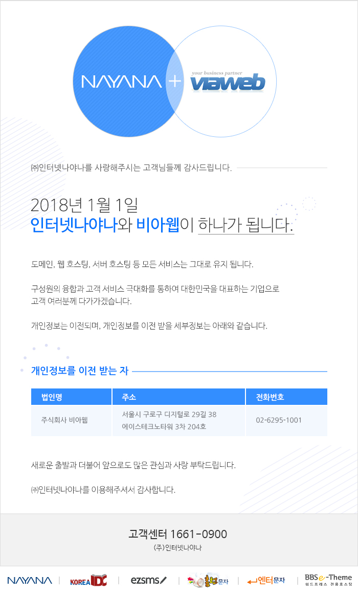 (공지) (주)인터넷나야나와 (주)비아웹이 하나가 되었습니다.