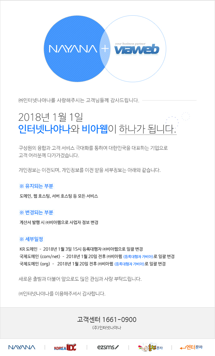 (2차공지) (주)인터넷나야나와 (주)비아웹이 하나가 되었습니다.